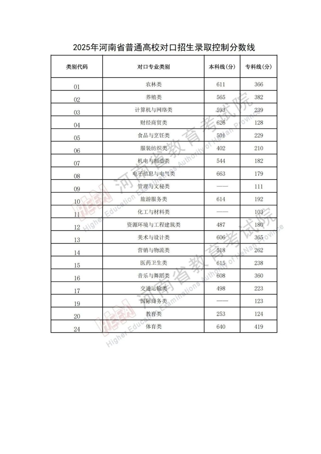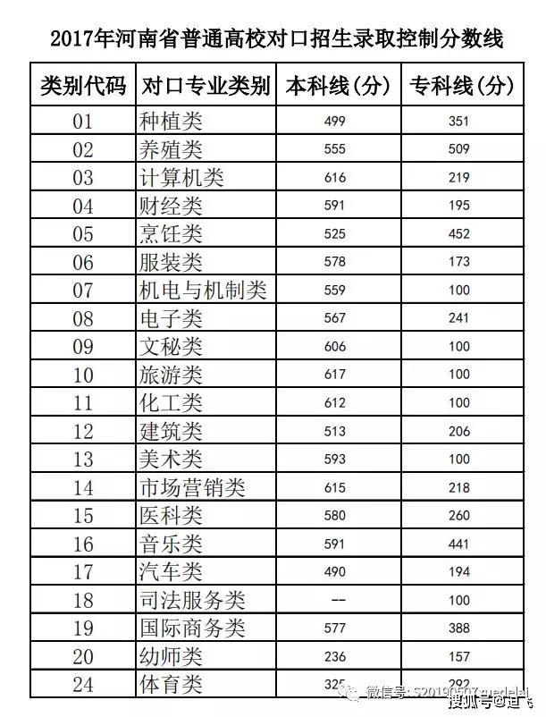 河南省普通高校对口招生录取控制分数线通常包括以下几类: