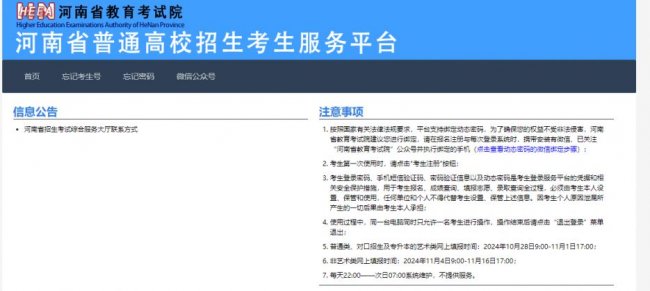 河南省普通高校招生考生服务平台