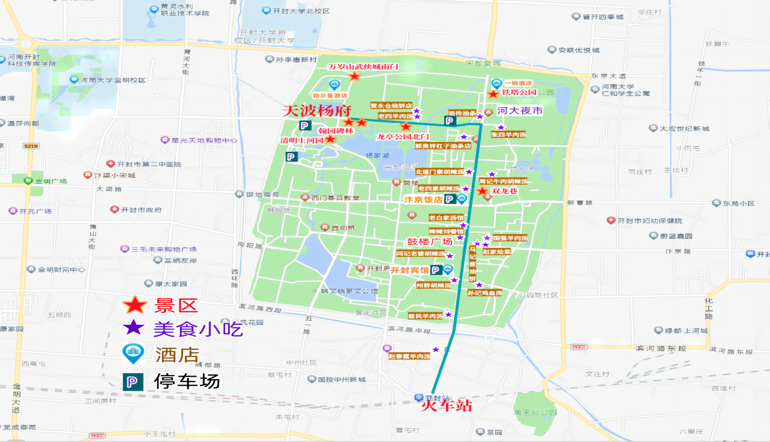 1. "宋都文化专线" - 线路:从开封火车站出发,途经龙亭公园、大相国寺、铁塔公园、禹王台公园等著名景点。 - 特色:提供导游讲解,游客可以深入了解开封的历史文化。