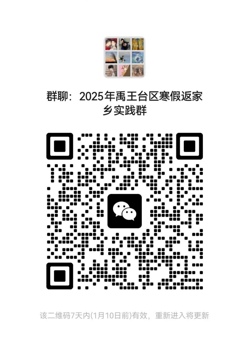 请报名参与社会实践的大学生扫码加入“2025年禹王台区寒假返家乡实践”群,进群请备注“姓名+单位(实习单位)+联系方式”,填报区直的大学生可以先备注“姓名+联系方式”,后续相关通知将在群内公布。